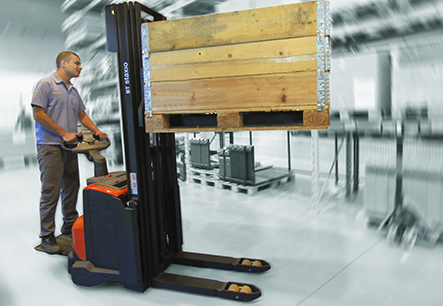 A função Sensilift, com comando na ponta dos dedos, permite o ajuste contínuo de velocidade de elevação e de descida dos garfos.